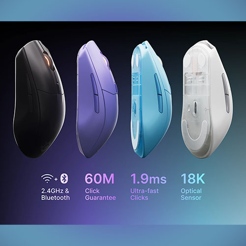 With an industry-leading 1.9ms click latency, the SteelSeries Rival 3 Wireless Gen 2 is faster than ever before, redefining speed and accuracy. With its strong Quantum 2.0 Dual Wireless technology, you can connect to laptops, tablets, and other devices instantaneously by switching to Bluetooth or by plugging in the gaming-grade 2.4GHz dongle for lightning-fast wireless performance. This fashionable and multipurpose mouse, which comes in Black, White, Lavender, and Aqua, is the ideal option for both daily use and competitive gaming.